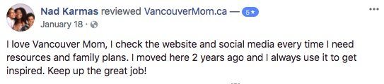 Congratulations to taking your first step in reaching Vancouver moms! We look through these listings to help us build our editorial, so we highly recommend that you add your listing to our directory for coverage.